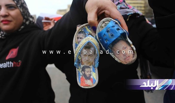 حملت بعض السيدات المتواجدات بميدان التحرير للاحتفال بذكري ثورة 25 يناير " شباشب" مرسوم عليها صور للرئيس التركى رجب طيب أردوغان والرئيس الأمريكى باراك أوباما اعترضا منهم على سياستهم تجاه مصر.