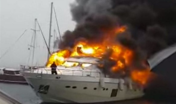 نشرت صحيفة "ديلي ميل" البريطانية مقطع فيديو، يظهر احتراق يخت فاخر مملوك لأحد رجال الأعمال روسي الجنسية، بالقرب من ميناء "ايدج سراى" التركي.