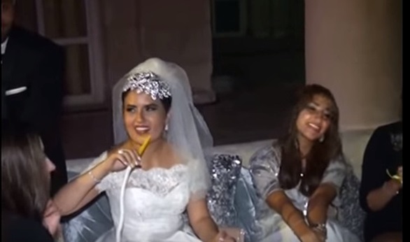تداول نشطاء عبر مواقع التواصل الاجتماعى فيديو يظهر عروسا من دولة عربية تركت عريسها وزفافها لتدخن الشيشة وتستمتع بآخر يوم فى العزوبية مع صديقاتها.. فلم تستطع العروس عدم التدخين يوم زفافها وسط المدعوين وظهرت وهى تجلس فى غرفة ملحقة بقاعة فرحها وهي تدخن الشيشة بسعادة وتتحدث مع صديقاتها.