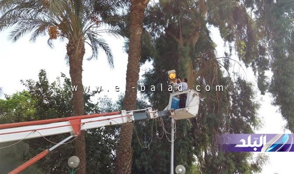 بالصور.. صيانة الأعمدة الكهربائية وكشافات الإنارة على طريق منفلوط الزراعي