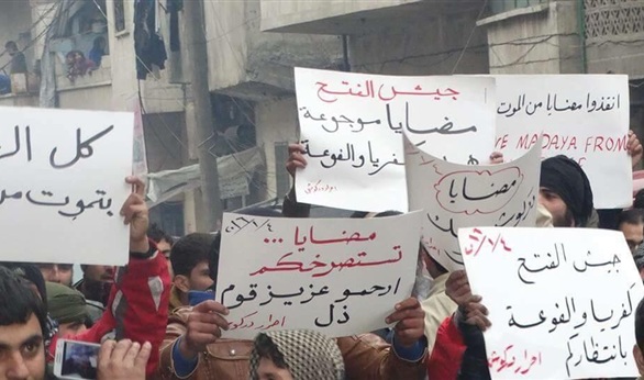 وانطلقت تظاهرة بعد أداء صلاة الجمعة في مدينة الأتارب بريف حلب الغربي نددت بحصار بلدة مضايا من قبل حزب الله والنظام ودعت الثوار للتوحد كما خرجت مظاهرة في مدينة معرة النعمان وأريحا في ريف ادلب.