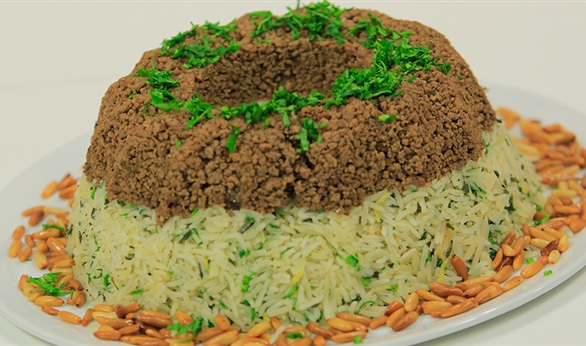 شوحي الروزماري في قليل من الزيت ضيفي بشر الليمون وبودرة البصل وبودرة الثوم ضيفي الأرز وقليل من المرقة وملح وفلفل والليمون واتركيه قليلا على الناراصنعي من الأرز واللحمة طبقات في قالب أرز واقلبيه في وعاء التقديم ثم قدميه مزين بالصنوبر.