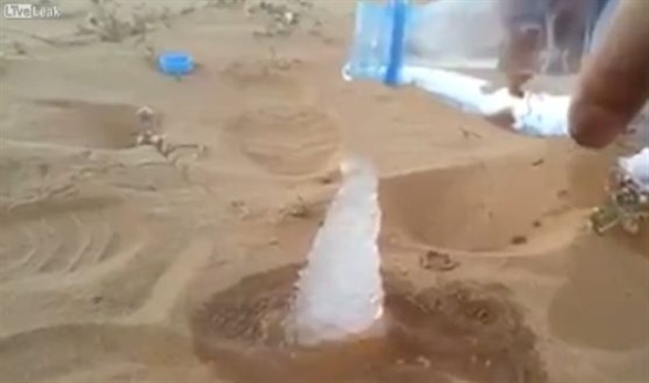 نشر موقع "لايف ليك" مقطع فيديو، يظهر شابا عربيا وهو يقوم بتجربة مثيرة وسط الصحراء، حيث يحول المياه إلى ثلج بمجرد سكبها على الرمال.