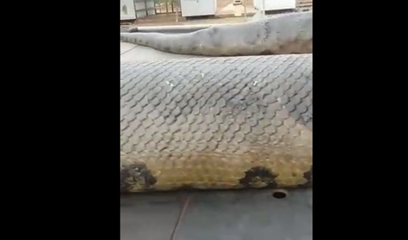 وتم تحميل لقطات على مواقع التواصل الاجتماعي، تظهر الثعبان مكبلاً بالسلاسل في الجزء الخلفي من شاحنة، وقام العمال بثني جسده عدة مرات حتى يناسب الشاحنة.
