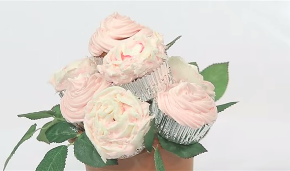 طريقة عمل بوكيه ورد من الكب كيك للفلانتين