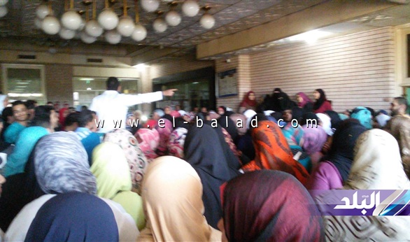 بالصور.. تظاهر أطقم التمريض بمستشفى جامعة القناة للمطالبة بصرف الكادر