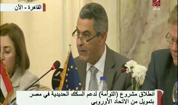 أعلن الدكتور سعد الجيوشي، وزير النقل، أن وفد الاتحاد الأوروبي الذى يزور مصر مع وزارة النقل وهيئة السكك الحديدية ووزارة التعاون الدولي، يحتفل بإطلاق مشروع التوأمة المؤسسية الممول من قبل الاتحاد الاوروبي، والذي تنفذه إسبانيا.