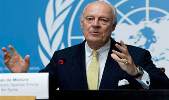 وأشار مبعوث الأمم المتحدة - وهو دبلوماسي سويدي حاصل على الجنسية الإيطالية، الذي تولى منصبه في يوليو 2014 - إلى أنه لا يستطيع تحديد موعد لاستئناف المحادثات السياسية بين نظام الأسد وجماعات المعارضة.