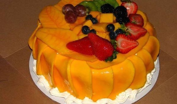 - نقسمها نصفين بالعرض ونحشوها بالكريمه وقطع المانجو ، ونضع الطبقه الأخرى من الكيك، ونزينها من السطح بالكريمة وقطع المانجة ونضعها فى الثلاجة حتى تجمد الكريمة .