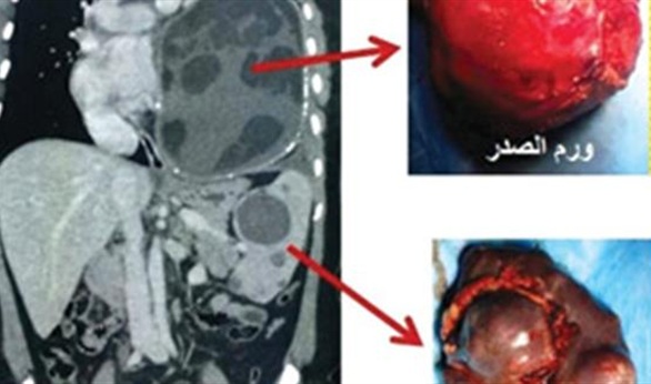 وتمكن الأطباء خلال عملية جراحية واحدة من استئصال ورمين كبيرين من صدر المريضة وبطنها، ثم خرجت من المستشفى بعد أسبوع بصحة جيدة.