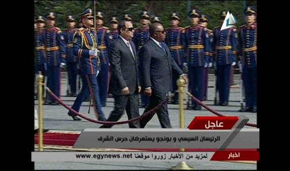 تفقد الرئيسان المصري عبدالفتاح السيسي و رئيس دولة الجابون "علي بونجو"، حرس الشرف بقصر الاتحادية الرئاسي.