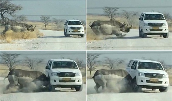 نشرت صحيفة "ديلي ميل" البريطانية مقطع فيديو، وصفته أنه الأسوأ في تاريخ حوادث الطرق، حيث اصطدم وحيد قرن ضخم بسيارة على الطريق، مما أثار ذعر مجموعة من السياح كانوا بداخلها.