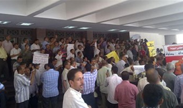 العشرات من العمالة المؤقتة أمام وزارة النقل للمطالبة بالتثبيت