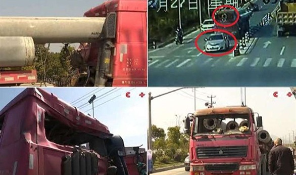 تداول رواد مواقع التواصل مقطع فيديو، يظهر قائد سيارة بيضاء صغيرة تسبب في حادث مأساوي غريب في مقاطعة تشيجيانج، شرقي الصين، عندما توقف فجأة أمام شاحنة تحمل أنابيب إسمنتية ضخمة، وهو ما جعل الأنابيب تخترق قمرة القيادة، وتقتل سائق الشاحنة، والأغرب أن قائد السيارة الصغيرة غادر المكان بعد ثواني دون أن يدري ما حدث.