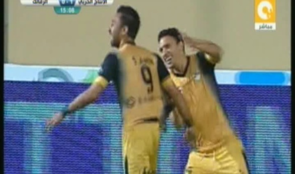 الركلة الاولى حينما لمست الكرة يد مدافع الانتاج داخل منطقة الجزاء فى احدى هجمات الفارس الابيض بالشوط الاول.