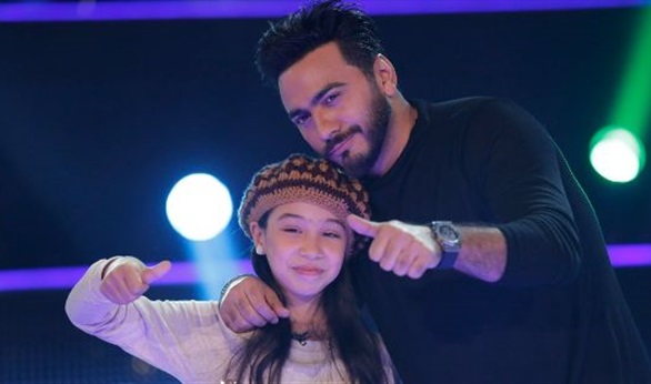 تامر حسنى يغازل متسابقة " ذا فويس كيدز"