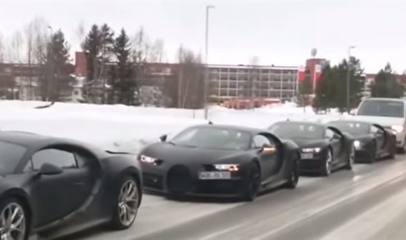 تداول رواد مواقع التواصل الاجتماعي مقطع فيديو، يظهر أسطولا مكونا من 6 سيارات 4 منهم من طراز بوجاتي تشيرون الجديدة كلياً، وكان الاسطول في طريقه لقرية سويدية لإجراء الاختبارات الشتوية، غير أن هذه النسخ الأربعة كانت نسخاً لنماذج أولية وليست إنتاجية.