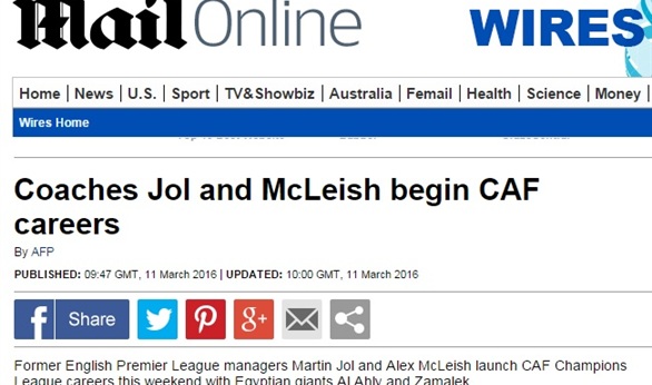 تحدثت صحيفة "ديلي ميل" الإنجليزية عن بداية مشوار فريقي الأهلي والزمالك الأفريقي تحت قيادة الثنائي الهولندي مارتن يول، والاسكتلندي ألكس ماكليش.