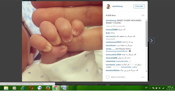 ورغم إعلان شريف لهذا الخبر منذ ساعات إلا انه كشف لجمهوره ان ريهام انجبت ابنهما يوم الاثنين الماضي ليتلقى تعليقات من جمهوره يتساءلون عن سبب إخفاء هذا الخبر طوال هذه الأيام .