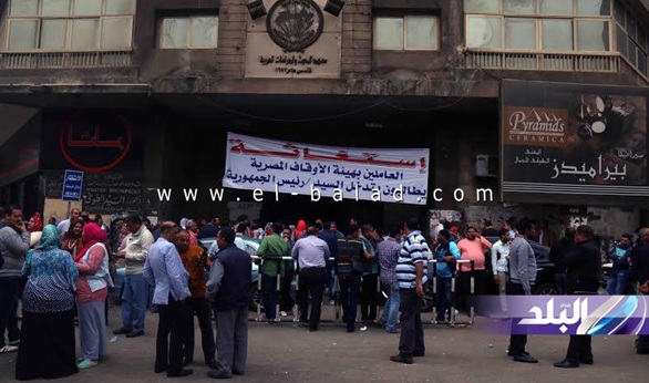نظم العشرات من موظفى هيئة الأوقاف المصرية اليوم الأحد، وقفة احتجاجية أمام مقر الهيئة للمطالبة برحيل بتغيير مجلس ادارة الهيئة بسبب ما تتكبده من خسائر ناتجة عن سوء الادارة الحالية، على حد تعبيرهم.