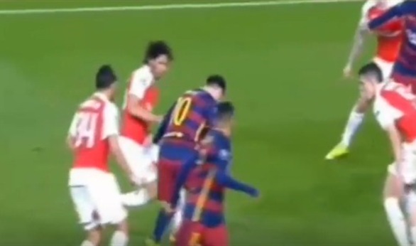 تفوق لاعب الوسط المصري الدولي محمد النني على النجم الأرجنتيني ليونيل ميسي في هجمة خطيرة لفريق برشلونة الأسباني على أرسنال الانجليزي في مباراة الفريقين في دوري أبطال أوروبا