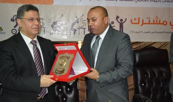 بالصور.. دروع لوزير القوى العاملة ومحافظ المنوفية ومدير العمل الدولية في ختام اسبوع السلامة بالمحافظة