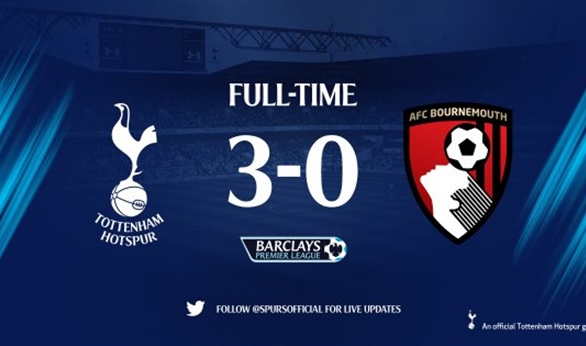حافظ فريق توتنهام هوتسبير على فارق الخمس نقاط مع ليستر سيتي متصدر مسابقة الدورى الإنجليزي الممتاز " البريميرليج " بفوزه على ضيفه بورتموث بثلاثة أهداف دون رد.