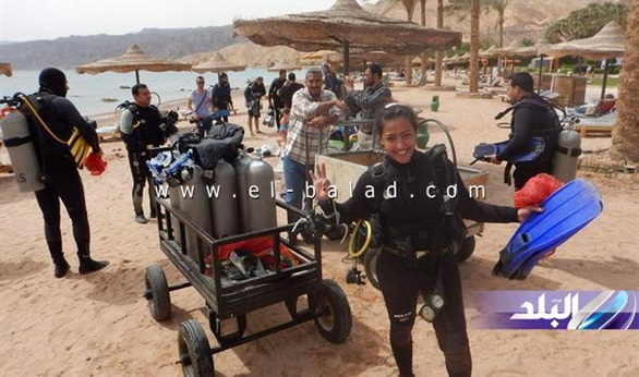 بالصور.. حملة نظافة فى قاع البحر لمواقع الغوص في "طابا ونويبع"