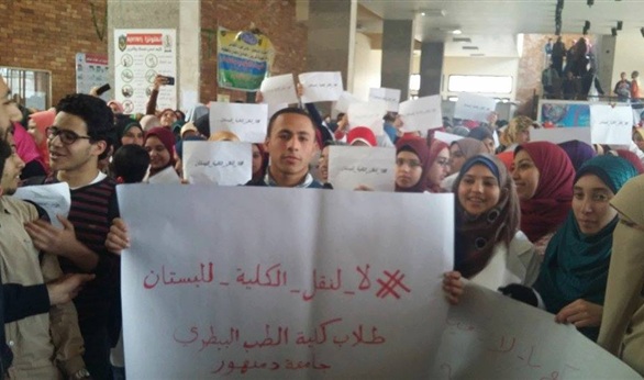 نظم طلاب وطالبات كلية الطب البيطرى وأعضاء هيئة التدريس بجامعة دمنهور، وقفة احتجاجية اليوم الأربعاء، داخل مبنى الكلية بدمنهور، للمطالبة ببقاء الكلية بدمنهور وعدم عودتها مرة أخرى لمجمع الكليات بمنطقة البستان.