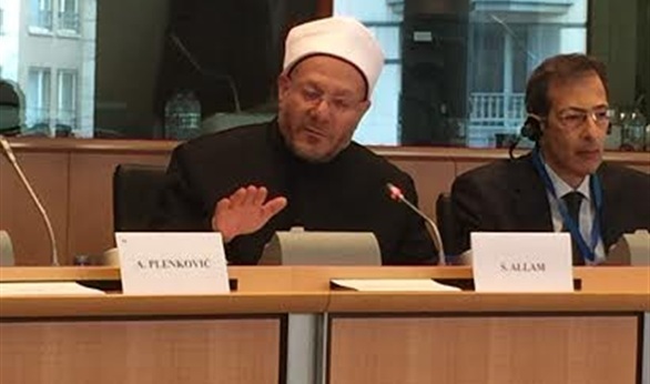 وعرض مفتي الجمهورية أمام البرلمان الأوروبي تجربة دار الإفتاء المصرية في مواجهة التطرف والإرهاب، حيث أكد أن دار الإفتاء استشعرت خطر فتاوى الإرهاب وقامت بحزمة من الإجراءات لمواجهة الآلية الدعائية للتنظيمات الإرهابية، ومن ضمنها داعش، وذلك من خلال إقامة مرصد لمتابعة الفتاوى التكفيرية والمتشددة، والرد على هذه الفتاوى وتفنيدها من خلال منهج علمي رصين، وإقامة مركز تدريبي متخصص حول سبل تناول ومعالجة الفتاوى المتشددة.