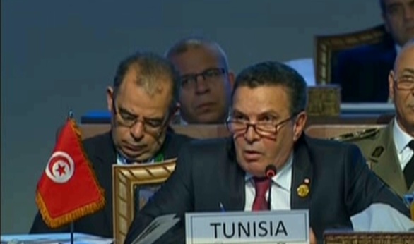 تقدم فرحات الحرشانى، وزير الدفاع التونسى، بالتحية والشكر للرئيس عبد الفتاح السيسى على رعايته اجتماع تجمع "الساحل والصحراء"، مؤكدا أن تونس نجحت فى القضاء على عدد كبير من الإرهابيين والجماعات المتطرفة فى البلاد.