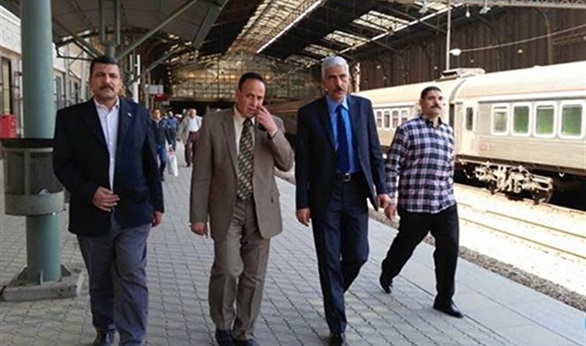 توجه المهندس مدحت شوشة رئيس هيئة السكة الحديد، إلى محطة الجيزة ومعه المسئولين عن المحطات.