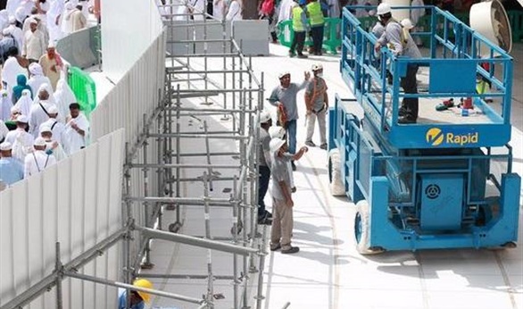 تداول عدد من رواد مواقع التواصل الاجتماعي "فيس بوك" و"تويتر"،مقطع فيديو لقيام العمال بإزالة جسر المطاف المؤقت بساحة الحرم المكي.