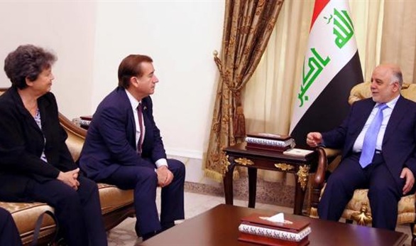 وبحث العبادي مع الوفد الأمريكي سبل تعزيز العلاقات الثنائية، وجهود الحرب على تنظيم داعش ومستجدات الأوضاع السياسية والأمنية في العراق والمنطقة.