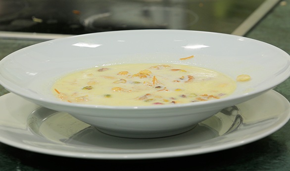 * اخلطي البليلة مع اللبن الساخن وقلبيهم جيدا ثم أضيفي مكسرات مشكلة مجروشة وقلبيها