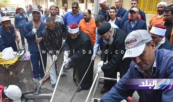 بالصور.. رجال الدين الإسلامي والمسيحي يشاركون في حملة نظافة وتشجير بدمنهور