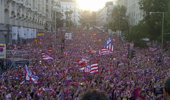 استقبلت جماهير نادى اتليتكو مدريد الاسباني استقبالا مذهلا،وذلك قبل سويعات على مواجهة برشلونة فى اياب دور ربع النهائى لبطولة دورى أبطال اوروبا.