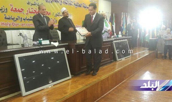 وتسلم شهادات التقدير عن الشيخ محمود خليل الحصري، كريمته ياسمين الخيام، وعن الشيخ عبدالباسط عبد الصمد نجله الضابط خالد، وعن الشيخ الطبلاوي الشيخ حلمي الجمل.
