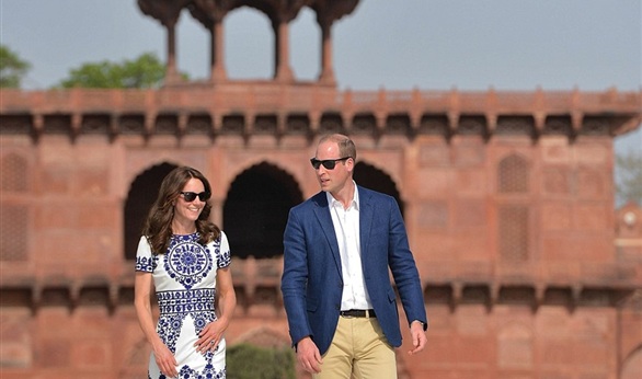 وظهر الامير ويليام بإطلالة رسمية مع زوجته التي ارتدت فستانا أبيض منقوشا برسومات زرقاء، ومن المقرر ان تنتهي زيارة اليوم ولي عهد بريطانيا لتاج محل.