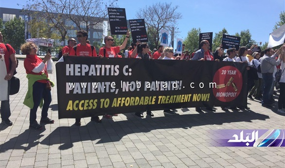 نظم عدد من مرضي فيروس «سي» الإسبان، وأسرهم غير القادرين علي دفع تكاليف الأدوية باهظة الثمن،وقفة امام مقر انعقاد المؤتمر العالمي لأمراض الكبد 2016 في برشلونة بإسبانيا.