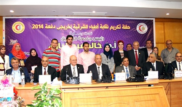 نظمت نقابة أطباء الشرقية اليوم، حفلا لتكريم خريجي دفعة 2014، والذين أنهوا دراستهم وأنهوا الامتياز بعد الدراسة، وجاري تكليفهم للعمل بمستشفيات جامعة الزقازيق، ووزارة الصحة والتأمين الصحي، وذلك بحضور محافظ الشرقية، واللواء سامي سيدهم، نائب المحافظ والدكتور خالد عبد البارى رئيس جامعة الزقازيق واللواء حسن سيف، مدير أمن الشرقية، والدكتور عبدالله عسكر نائب رئيس جامعة الزقازيق لشئون خدمة المجتمع والدكتور يحيى زكريا عميد كلية الطب، والدكتور أيمن سالم، نقيب أطباء الشرقية، وذلك بقاعة الاحتفالات بمبنى الجراحة بمستشفيات جامعة الزقازيق.