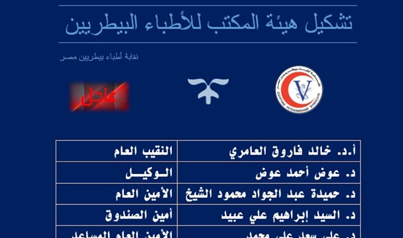 " البيطريين" تعلن التشكيل الجديد لمكتب هيئتها