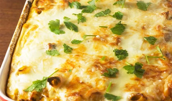صينية البطاطس بالخضراوات والكريمة