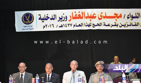 شهد اللواء مجدى حجازى محافظ أسوان واللواء عمر ناصر مدير أمن أسوان بقصر ثقافة أسوان مراسم إجراء القرعة العلنية لإختيار حجاج القرعة من أبناء المحافظة لعام 1437 هـ/2016م بإجمالى 287 فرصة حج والتى تقام تحت إشراف وزارة الداخلية وبحضور القيادات الأمنية والدينية والشعبية والتنفيذية وعدد من المتقدمين للقرعة وأسرهم.