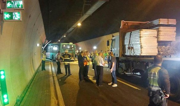 ذكرت صحيفة يديعوت أحرونوت العبرية أن حافلة إسرائيلية تعمل على الخط رقم 101 وتابعة لشركة إيجيد تعرضت لحادث تصالدم مروع أثناء عبور نفق الكرمل في منطقة الجليل، وذلك في المنطقة الواقعة بين حوف هاكرمل وحيفا بشمال الأراضي الفلسطينية المحتلة المطلة على البحر المتوسط، وقع وقع الحادث في الساعة 8.23 دقيقة من مساء اليوم الخميس بتوقيت فلسطين المحتلة، مشيرة إلى أن الحافلة كانت مكتظة بالركاب.