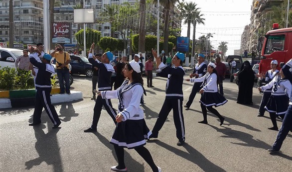 التنورة والسمسية في استقبال السفينة السياحية black watch ببورسعيد