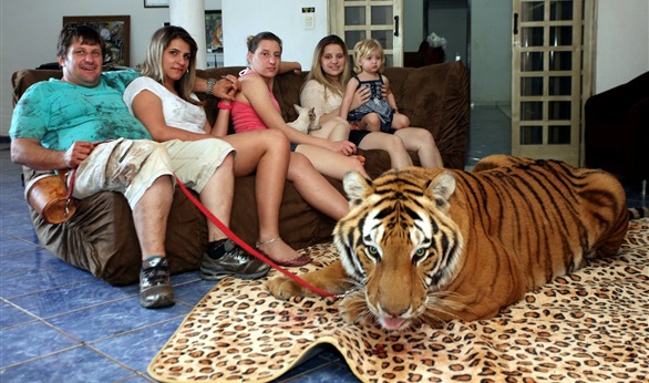 هناك حيوانات أليفة لدى الناس وهي كلاب أو قطط في العادة، إنما جريجوري إيفانوف وأولغا ديمينتييفا، من مدينة نيجني نوفغورود الروسية، قررا أن يتبنيا شبلا صغيرا ويحتضناه في منزلهما.