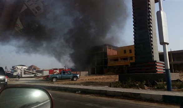 بالصور.. 20 سيارة إطفاء تسيطر علي حريق معرض سيارات بالطريق الصحراوي