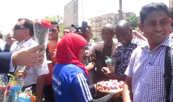 وشهدت الاحتفالات أجواءً من الفرحة والسعادة الغامرة التي عمت كافة الميادين حيث تم توزيع الأعلام والورود والشيكولاتة على المواطنين والسيارات المارة في الشوارع، كما قام المحافظ بتقديم التهئنة بهذه المناسبة الغالية لضباط وأفراد الأمن المتواجدين في الشوارع والميادين لتأمين الاحتفالات.