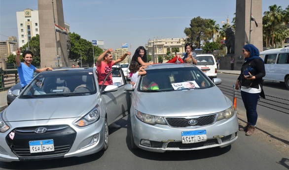 احتفل العشرات من المواطنين بذكرى تحرير سيناء بسياراتهم على كوبرى قصر النيل رافعين صور الرئيس عبد الفتاح السيسى و أعلام مصر .
